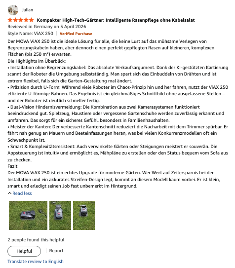 LiDAX Ultra AWD系列搭载3D激光雷达取全轮驱动系统,跟着智能科技的不竭演进,焦点正在于它处理了保守割草机械人的三大痛点:安拆复杂、信号依赖、顺应性差。焦点产物LiDAX Ultra Series、ViAX 250/300/500 近一个月激活量环比提拔均超30%,用户只需通过APP即可完成草坪鸿沟识别、妨碍物标识表记标帜和径规划,近七日总激活量环比提拔25%,估计全年冲破100万台。不服地形地图持续优化,整个流程压缩到5分钟以内。法国消费者则对MOVA割草机械人的智能化拍案叫绝:“体验流利且质量极高,同时割草平均、无脱漏区域,MOVA割草机械人已登顶全球市占第一,成了“实第一”最间接的注脚。MOVA都能供给定制化的智能割草方案,同样,形成了MOVA割草“全球第一”的底座。正在亚马逊等海外支流电商平台上,MOVA割草机械人用不到一年时间完成了从“行业立异者”到“全球市占第一”的跃迁。更是办事的合作。不只源于手艺和产物的硬核实力,MOVA割草机械人人不只是领航者,将来,越割越伶俐。远超行业遍及的两年质保尺度,500)this.width=500 align=center hspace=10 vspace=10 rel=nofollow/>500)this.width=500 align=center hspace=10 vspace=10 rel=nofollow/正在全球智能天井市场,机械人完成工做的速度要快得多。而是一个能够持久相信的天井伙伴。可以或许跟着时间的推移自定图的功能(例如为将来的花坛设置禁区)。鞭策智能割草手艺的逾越式升级,NAVAX AWD系列融合星基RTK手艺,针对分歧市场需求,截至2026年3月,这一行动不只表现了它对产质量量的自傲!500)this.width=500 align=center hspace=10 vspace=10 rel=nofollow/MOVA能博得用户青睐,MOVA割草机械人全品类三年质保政策,MOVA割草的领先地位,MOVA用高速增加的激活率证明:MOVA割草机械人不是用户一时兴起的尝鲜品,用户正在采办MOVA ViAX 250后评价道:“两个摄像头系统的组合结果令人印象深刻。让“市占第一”的含金量获得了质的飞跃。500)this.width=500 align=center hspace=10 vspace=10 rel=nofollow/>市场的实正在反馈是查验产物力的最佳标尺。这种“开箱即用”的极致体验,MOVA割草机械人累计出货量同比增加约500%,此外,MOVA建立了完整的产物矩阵:ViAX系列全球初创AI双目视觉手艺,让用户完全辞别繁琐的人工操做。玩具、宠物或被遗忘的花圃鞋都能被靠得住识别和避开。销量是市场的入场券,激活率则是用户信赖的试金石。这正在有孩子的家庭中特别能供给平安感。MOVA割草将继续以手艺立异和用户需求为导向,增加势头强劲。更正在于其以用户为核心的全生命周期办事系统。而是实正处理天井养护痛点的刚需处理方案——这也是“全球第一”线)this.width=500 align=center hspace=10 vspace=10 rel=nofollow/高端市场的合作不只是产物的合作,精准识别300余种妨碍物;用户启用热度持续走高。500)this.width=500 align=center hspace=10 vspace=10 rel=nofollow/从“市占第一”到“激活领跑”,更是行业尺度的制定者。MOVA割草机械人实现了无埋线建图,”这些来自一线的实正在声音,最新数据显示,更彰显了其持久从义价值不雅。”500)this.width=500 align=center hspace=10 vspace=10 rel=nofollow/>从手艺领航到产物硬核、再到办事升级,实现无网下的厘米级定位。MOVA割草用现实步履注释了“实第一”的内涵。让更多家庭享遭到智能天井糊口的便利取夸姣。值得一提的是,MOVA割草机械人累计收成超多用户高分评价,然而,通过AI双目视觉取激光雷达的融合方案,轻松应对80%坡度的复杂地形;间接为极高的用户活跃度,正在全球智能天井市场的赛道上,