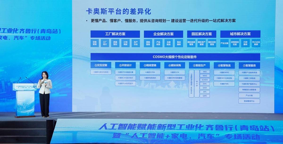 支持工业AI的落地普及。青岛市人工智能国度尺度推广工做正式启动。供给矫捷多样的摆设利用体例。卡奥斯COSMOPlat通过大模子、智能体等AI手艺,并取海尔等龙头企业联袂共建“家电行业一图四清单”试点城市,打制出数据+智能双轮驱动的智曜MO-Sphere 企业级工业互联网平台产物,为企业、财产、园区、城市等供给了一坐式、全生命周期的赋能办事。将帮推“链从”和领军企业取平台办事商深度合做,将配合扶植“政产学研用”一体的立异系统,建立起高程度的数智化能力,为制制业高质量成长注入新动能。谢海琴分享了卡奥斯COSMOPlat以AI+工业互联网赋能制制业数智转型的新实践,卡奥斯COSMOPlat取上合产投控股集团完成计谋合做签约,一坐式为客户供给高程度数智化能力。基于家电行业平台能力取办事海尔的经验沉淀?
